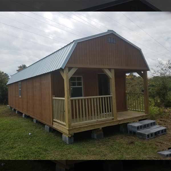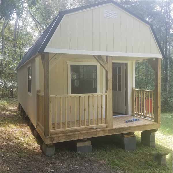 The Lofted Barn Cabin is stylish and practical for storage, dwelling, and additional structure purposes. It is available in 10ft, 12ft, 14ft, and 16ft widths with a barn style roof. Features for all models include a 36in 9-Lite Door, two overhead lofts for additional storage, three 2ft x 3ft Windows, and a 4ft deep front porch.