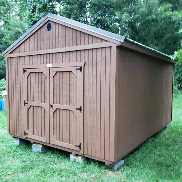 The Utility is one of our most popular sheds. It is available in 8ft, 10ft, 12ft, 14ft, and 16ft widths. All models come with 7ft tall walls standard. Walls may be lowered to 6ft tall, or if the building is at least 10ft wide, raised up to 8ft tall at no extra cost. Standard features include a single 48in wooden Shop-Built Door in the 8ft-wide model, and a 72in wooden Shop-Built Double Door in models that are 10ft+ wide. Windows are not included, but may be added.